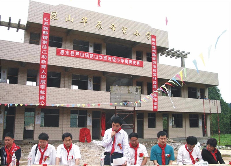 2008年,格我小學新教學樓主體工程完工。9月份的新學期開學后,近200名學生搬進這棟由華辰愛心融注的嶄新教學樓,徹底擺脫了過去在危房中學習的困境。如今,格我小學已更名為“昆山華辰希望小學”,以表達對公司雪中送炭的善舉之感謝。
