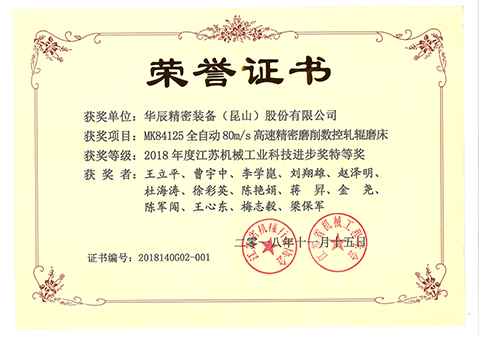 江蘇機械工業科技進步獎特等獎-2018