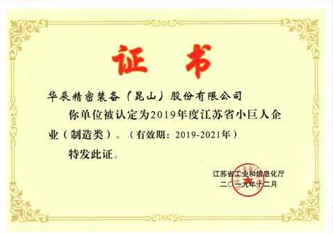 2019年度江蘇省小巨人企業